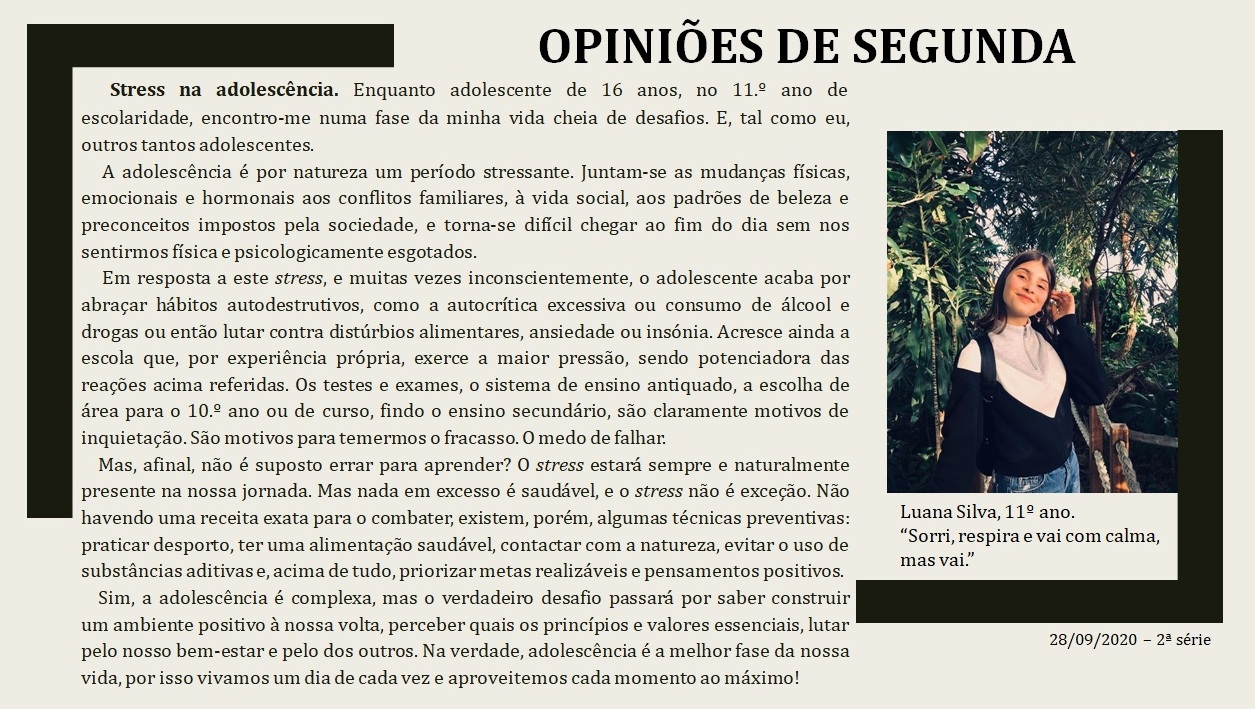 Na crónica desta segunda, Luana Silva escreve sobre o stress na adolescência e sobre a importância de sabermos gerir a pressão, construindo “um ambiente positivo à nossa volta”.