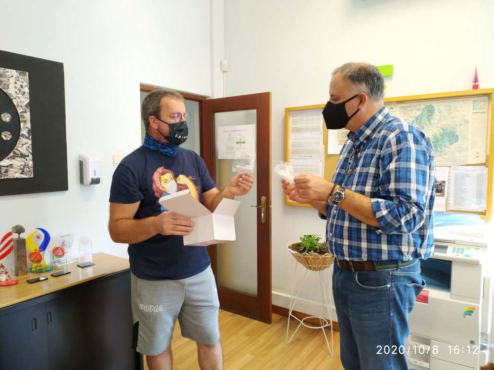 Em tempos de pandemia, em que todos devemos dar as mãos e ser solidários, esta é uma forma de agradecer ao Agrupamento todo o trabalho que realizou na formação do meu filho, disse Victor de Castro no momento em que entregou o EPI ao Diretor, Carlos Alberto Louro.
