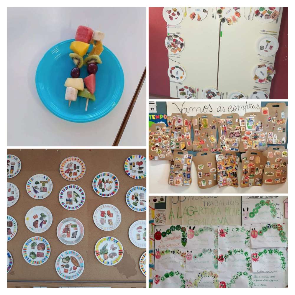 Em articulação com as várias disciplinas, foi promovida a leitura de histórias sobre alimentação saudável, como “O menino que não gostava de sopa”, “A horta do sr. Lobo”, “A Lagartinha muito comilona” e “O dia em que a barriga rebentou”.