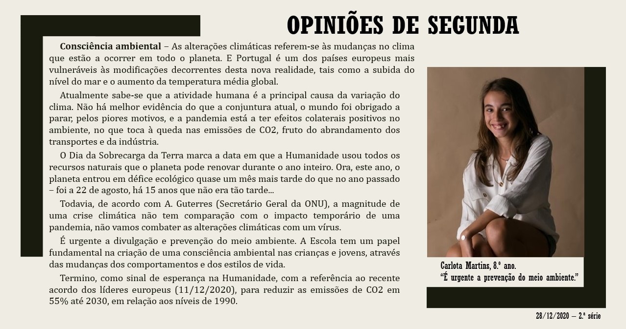 Na opinião da Carlota Martins, são urgentes “mudanças dos comportamentos e dos estilos de vida”. E, nesta matéria, “a Escola tem papel fundamental…”