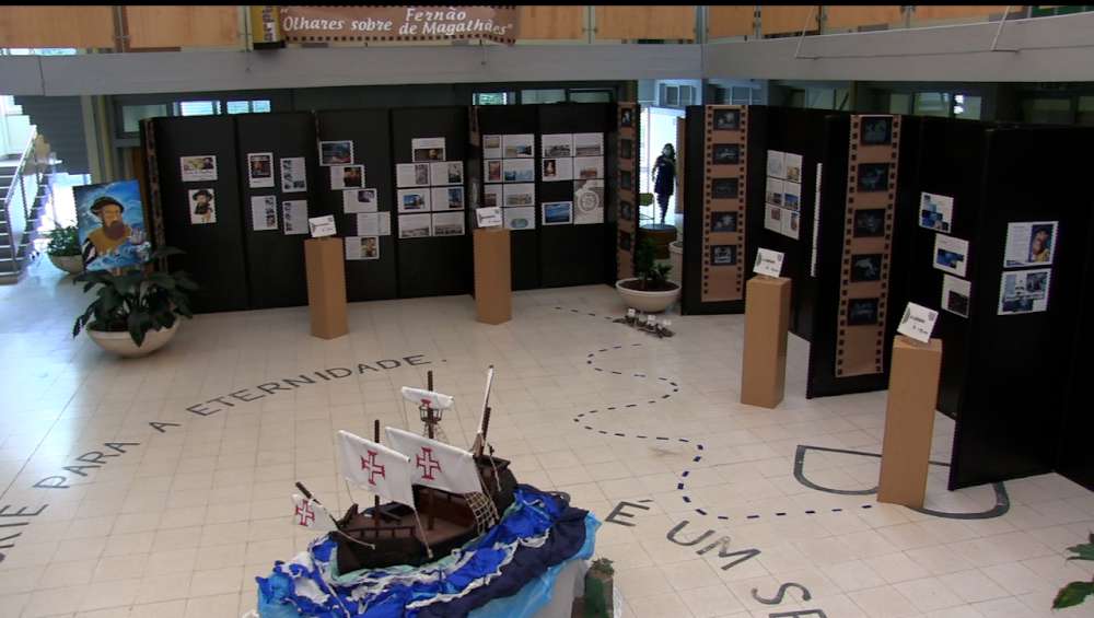 E foram, precisamente, os alunos do curso científico-humanístico de Artes Visuais que, no último ano letivo, conceberam e agora realizaram um mural, à entrada do bloco onde está patente a exposição, para assinalar a viagem de circum-navegação. O quadro comemorativo ficará brevemente concluído com a pintura da figura central, Fernão de Magalhães.