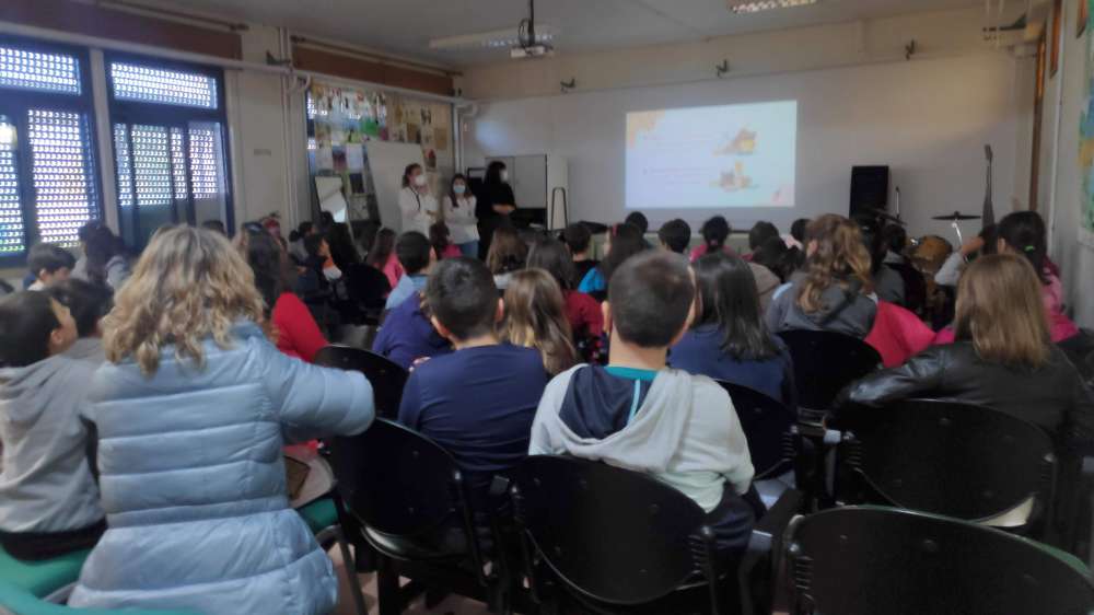 Uma das doutoras abordou a importância da água no nosso dia a dia, mostrou aos alunos a quantidade proporcional do açúcar contido nos sumos e de, entre todos, quais os que podem ser consumidos, ainda que raramente.