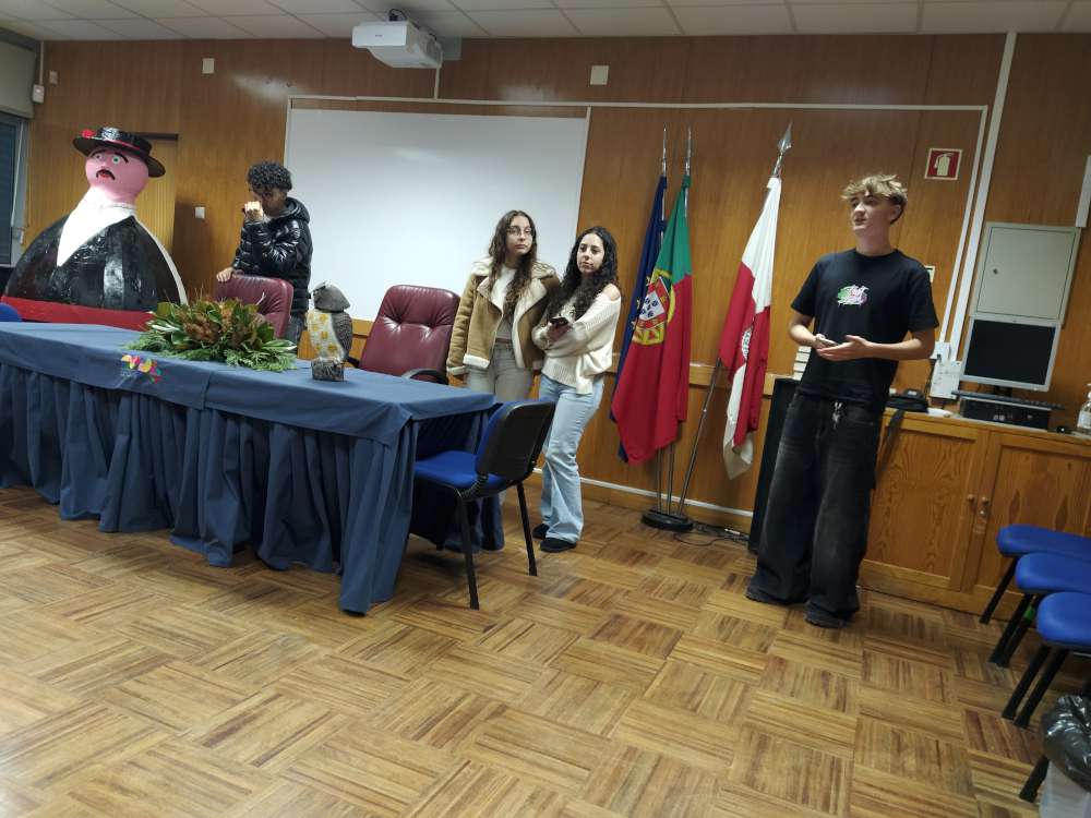 Durante o intervalo da manhã, a turma 11.º A protagonizou um momento especial: os alunos cantaram uma canção, na sala de professores, com letra evocativa da filosofia e composta pelos próprios.