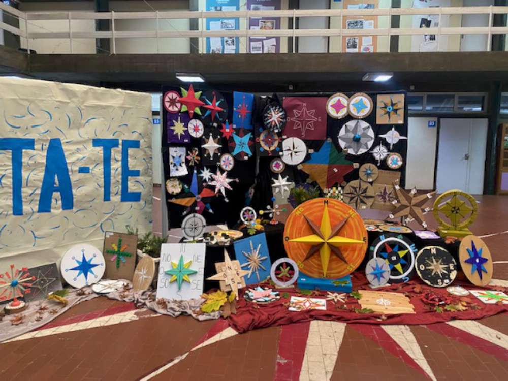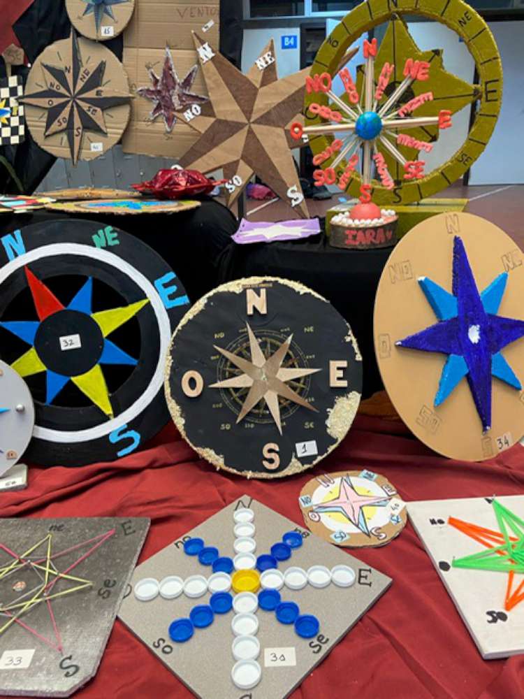 Para além disso, as rosas dos ventos serviram como instrumento de avaliação da disciplina. Contudo, independentemente dos resultados obtidos, todos são vencedores, na medida em que aproveitaram esta oportunidade de aprendizagem, contribuíram para a apresentação de uma atividade enriquecedora em conhecimentos geográficos, permitiram o envolvimento das famílias e da comunidade escolar e potenciaram o embelezamento do átrio do bloco B.