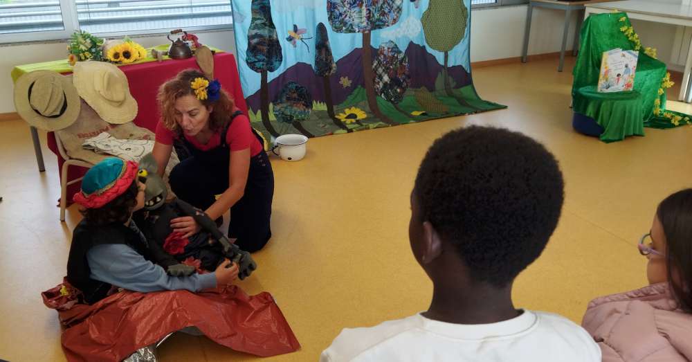 Ao longo de três dias, a contadora de histórias visitou as EB Diogo Bernardes, de Crasto e de Entre Ambos-os-Rios, proporcionando aos mais novos um espetáculo inspirado, respetivamente, nas obras “Dá dois pulos de contente”, de Fernando Pessoa, com ilustração de Lisveth Ponce de León (EPE e 1.º ano), e “Os animais agradecidos”, de Guerra Junqueiro, com ilustração de Nuno Alexandre Vieira (2.º, 3.º e 4.º anos).
