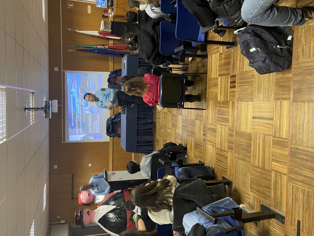 Ao longo da ação, os elementos da Escola Segura procuraram envolver os estudantes através de exemplos práticos e momentos de reflexão, reforçando a relevância da prevenção e da informação na construção de um percurso pessoal e académico seguro.