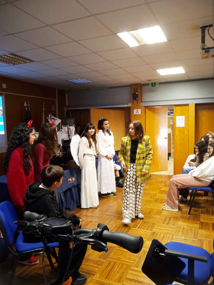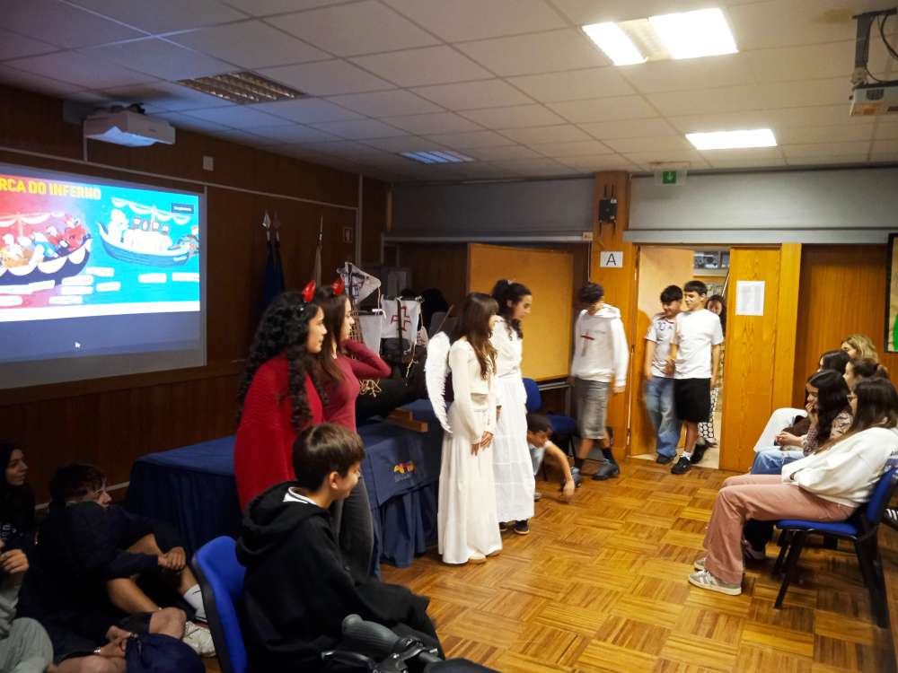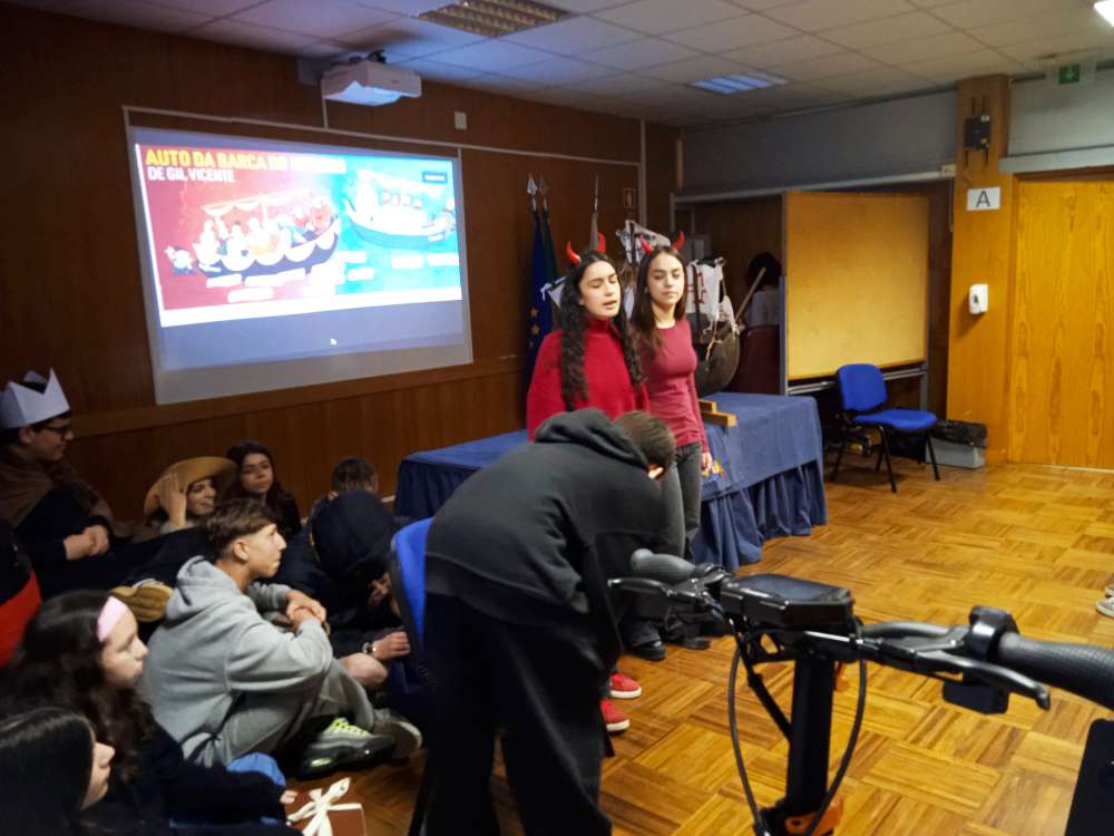 A iniciativa contou com a presença das turmas do 8.º ano, que foram convidadas a assistir à visualização de um excerto da obra Auto da Barca do Inferno, da autoria de Gil Vicente, texto de leitura obrigatória no 9.º ano. A apresentação incidiu apenas sobre algumas cenas selecionadas da peça, cuidadosamente escolhidas por representarem de forma clara momentos marcantes e a diversidade de personagens-tipo presentes na obra.