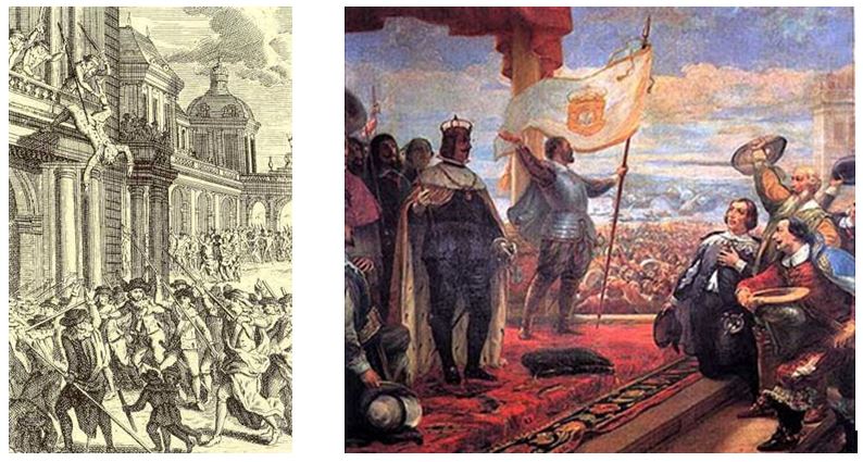 Assim, no dia 1 de dezembro de 1640, um grupo de 40 fidalgos dirigiu-se ao Paço da Ribeira onde estavam a duquesa de Mântua, regente de Portugal, e o seu secretário, Miguel de Vasconcelos. A duquesa foi presa, o secretário morto e Portugal recuperou a sua independência. D. João IV, duque de Bragança, foi aclamado rei, com o cognome de "O Restaurador".