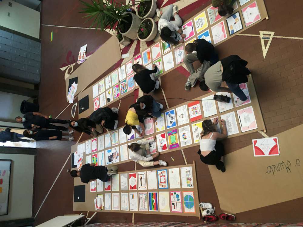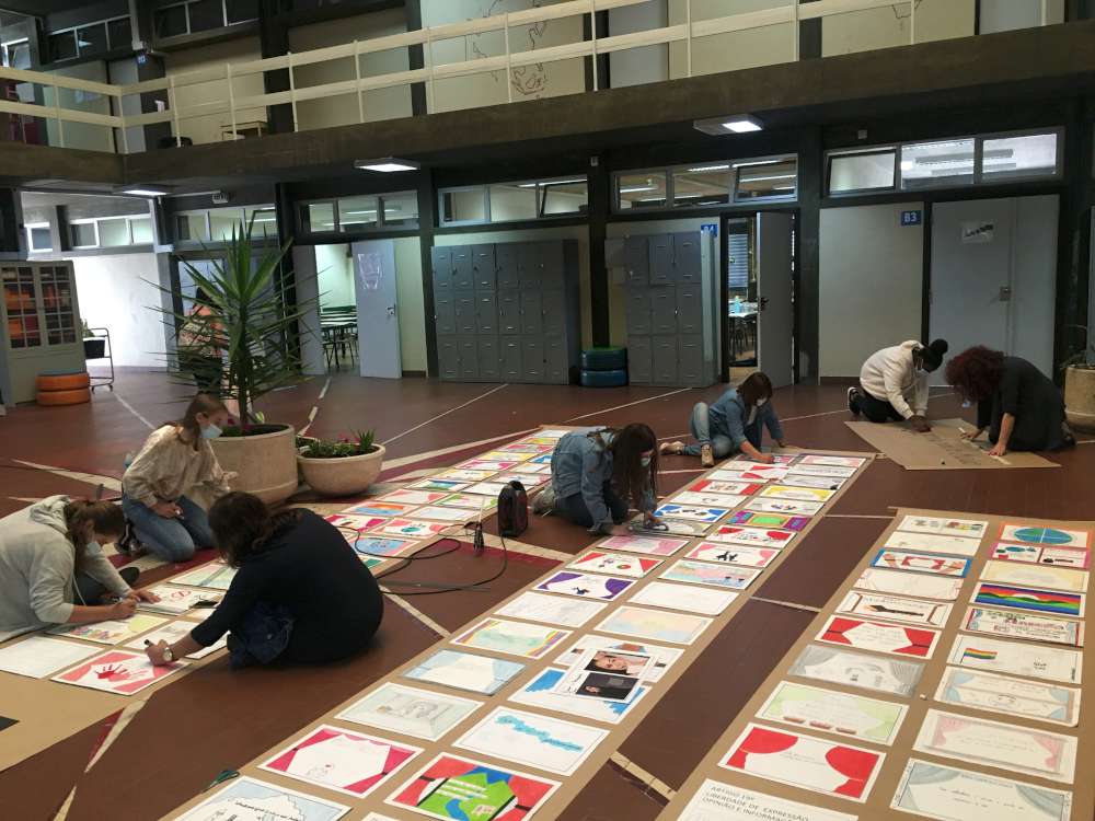 A exposição conta com trabalhos dos alunos que exploraram, colaborativamente, o tema dos Direitos Humanos e do Voluntariado, respetivamente. Os alunos tiveram a oportunidade de expressar os seus sentimentos, através da sua janela das emoções onde retrataram, na mesma, os temas em questão.