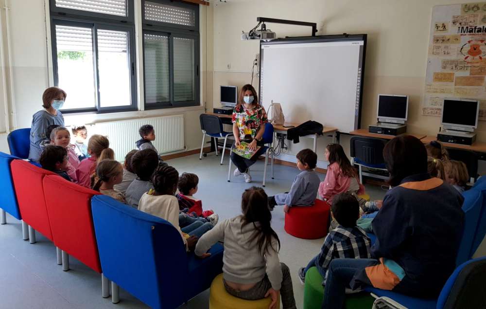 Inês Araújo visitou as três escolas básicas do Agrupamento, onde dinamizou uma sessão junto de cada uma das 25 salas/turmas dos mais novos, dando voz à palavra e à imaginação e fomentando o gosto pelo livro e pela leitura.