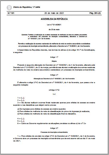 Permite a realização de exames nacionais de melhoria de nota no ensino secundário e estabelece um processo de inscrição extraordinário, alterando o Decreto -Lei n.º 10 -B/2021, de 4 de fevereiro.