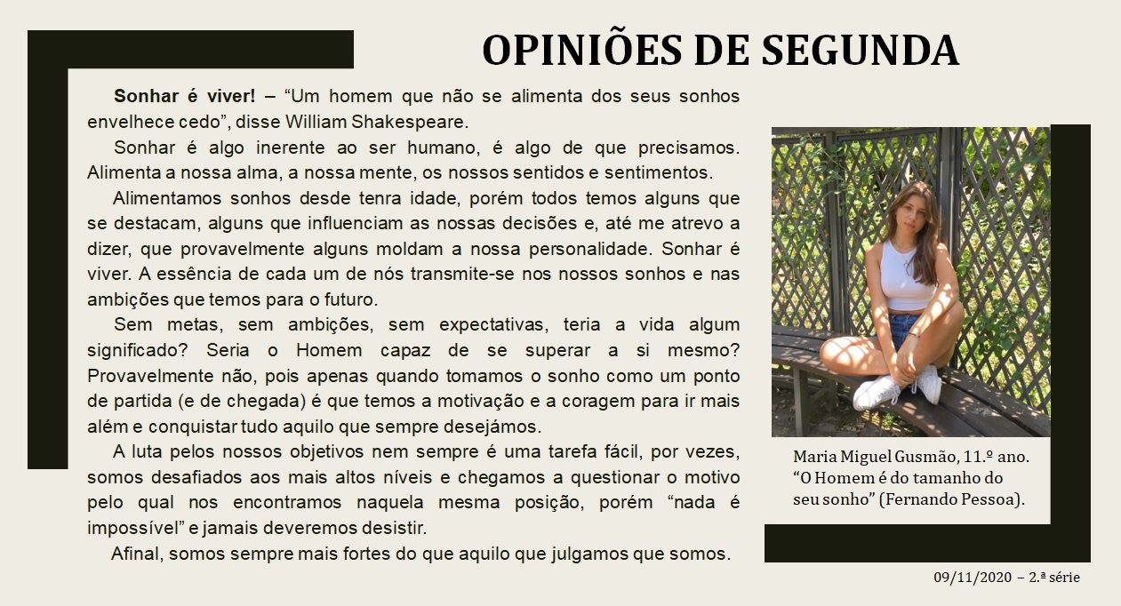 “Opiniões de Segunda” – Sonhar é viver!