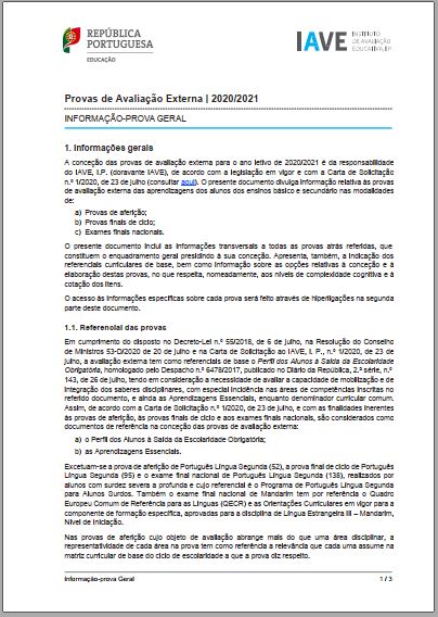 Provas de Avaliação Externa 2020/2021 - INFORMAÇÃO-PROVA GERAL