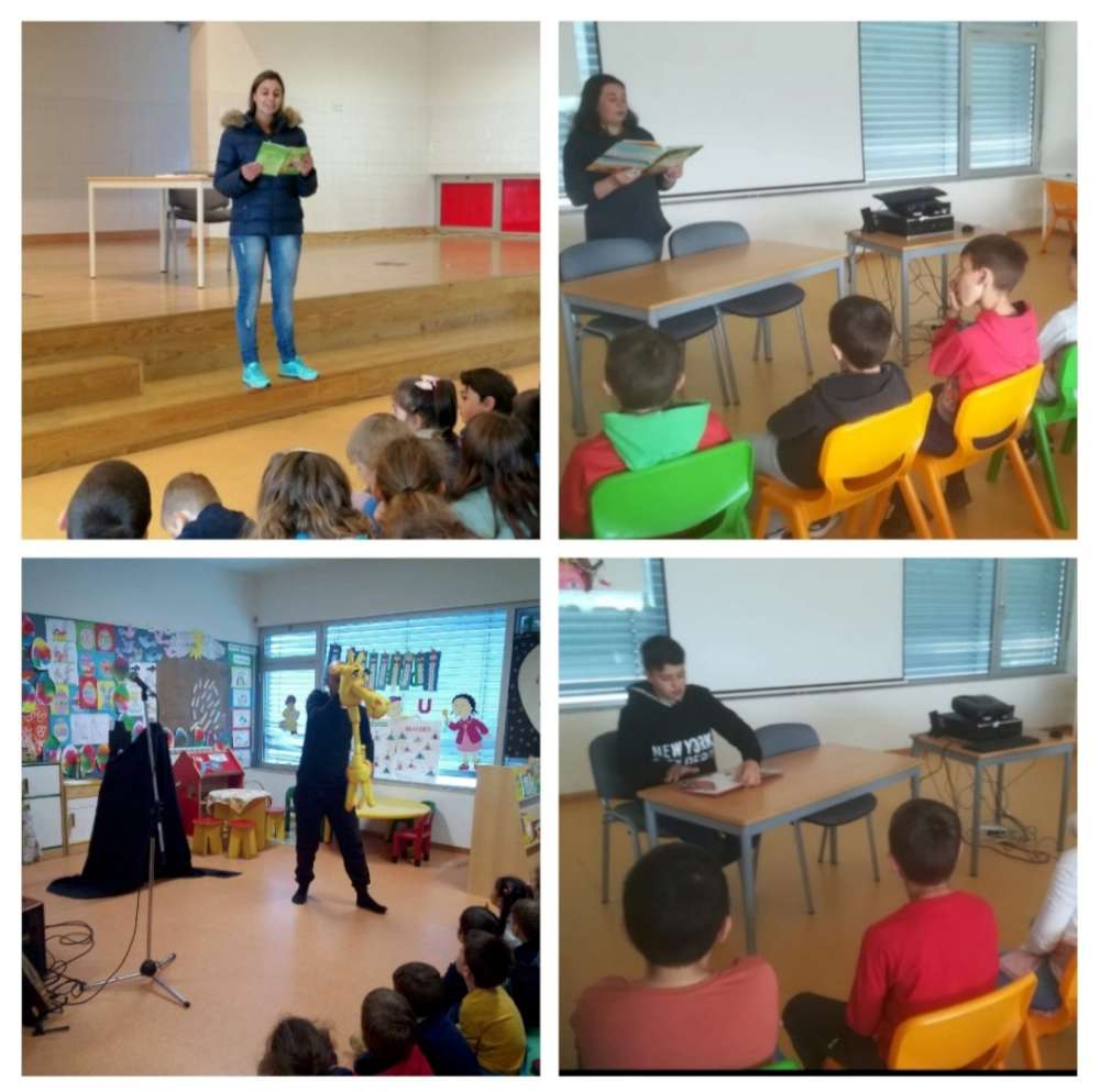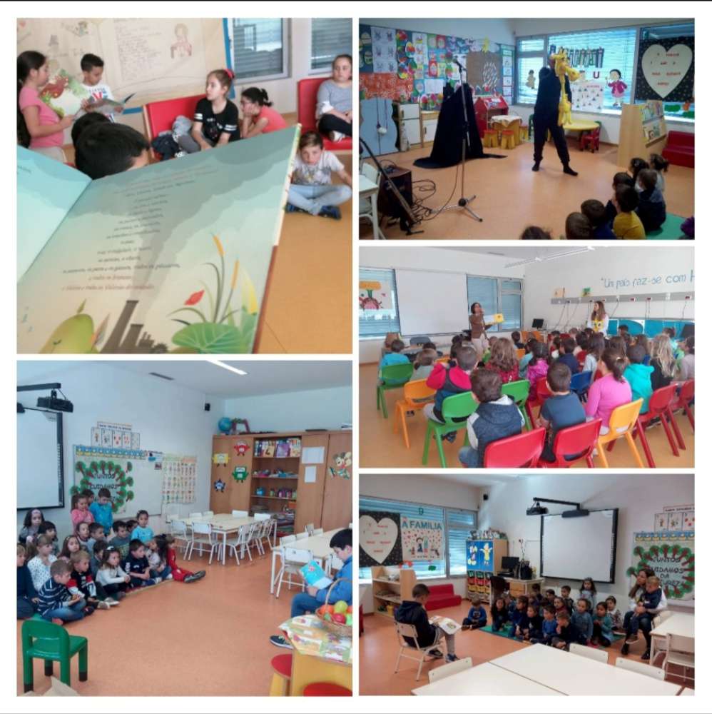 Os alunos elaboraram marcadores de páginas com mensagens alusivas à leitura e aos livros e fizeram também a leitura de contos pelas salas de aula do primeiro ciclo e do pré-escolar, apresentaram representações teatrais e teatro de fantoches.