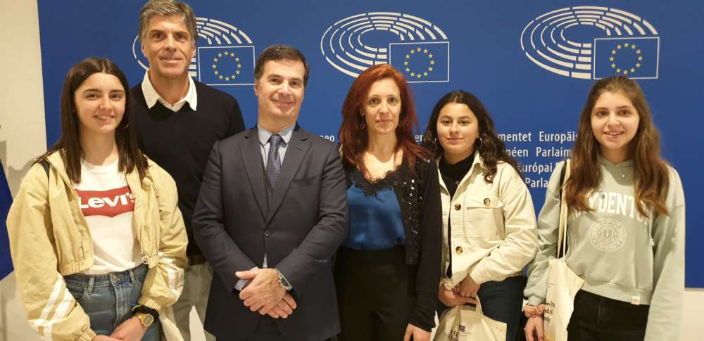 Maria Miguel Gusmão, Maria Gomes e Joana Fernandes, acompanhadas pelos professores António Barbosa e Rosa Maria Arezes, foram recebidos pelo eurodeputado José Inácio Faria, eleito pelo Movimento Partido da Terra / PPE.