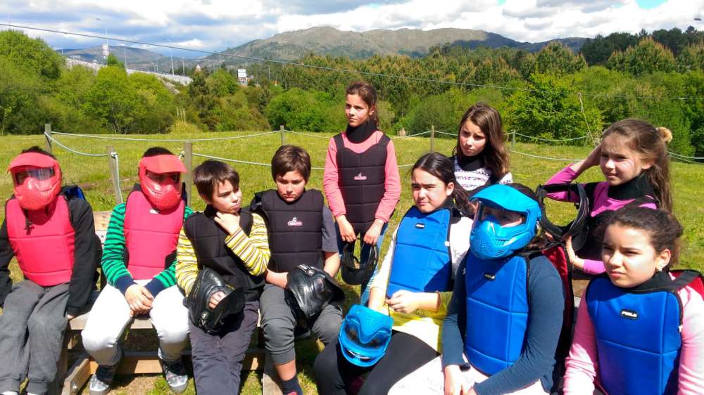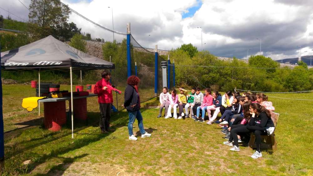 O prémio do 4.º objetivo foi um jogo de Paintball na quinta de Penteeiros. Com esta iniciativa, pretendeu-se reconhecer o esforço e o trabalho desenvolvido pelos alunos das turmas 5.º A e 7.º E. Os alunos equiparam-se devidamente para a atividade. Depois das instruções dadas pelos monitores, começou o jogo!