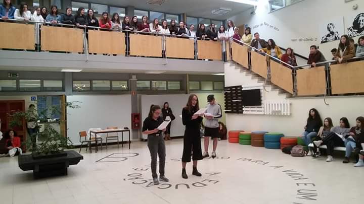 Na quarta, às 10:20 horas, no bloco C, e às 12:00 horas, no bloco B, a leitura foi celebrada através da declamação de textos poéticos de autores portugueses por dois grupos de alunos – um do 9.º ano e outro do 12.º ano. Estes momentos contaram, ainda, com a animação do grupo de bombos do Agrupamento de Escolas.
