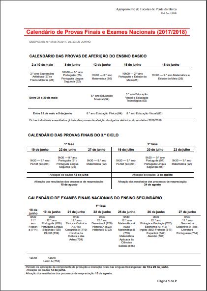 Calendário de Provas Finais e Exames Nacionais (2017/2018)