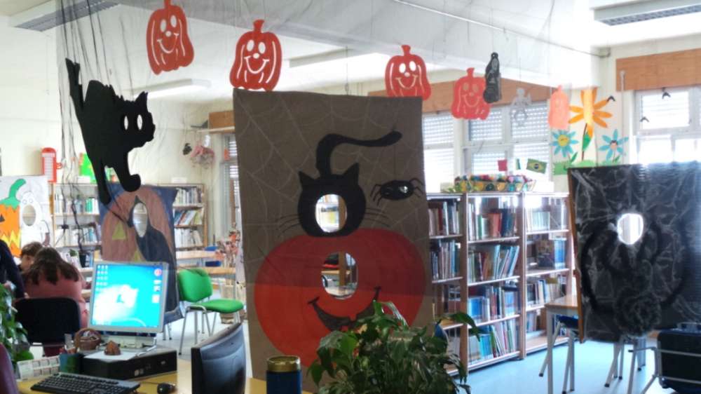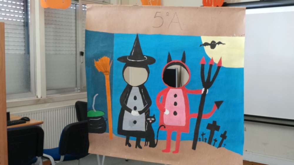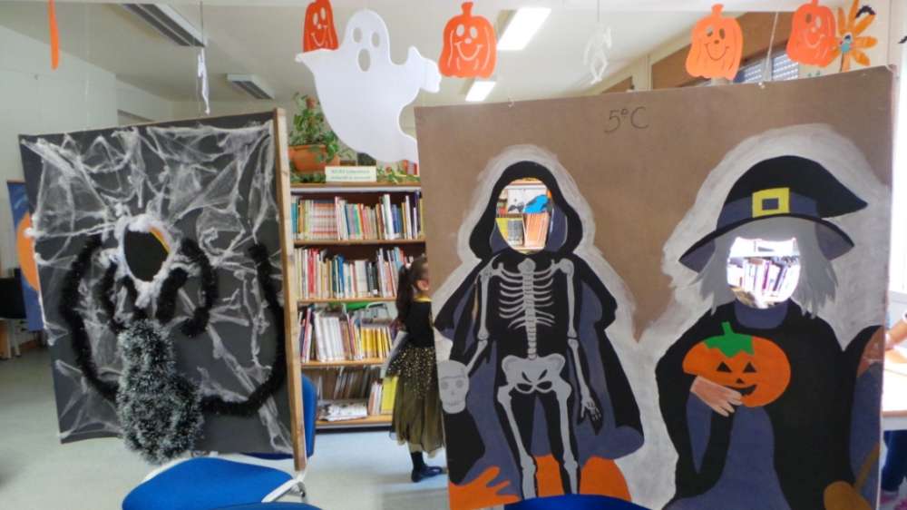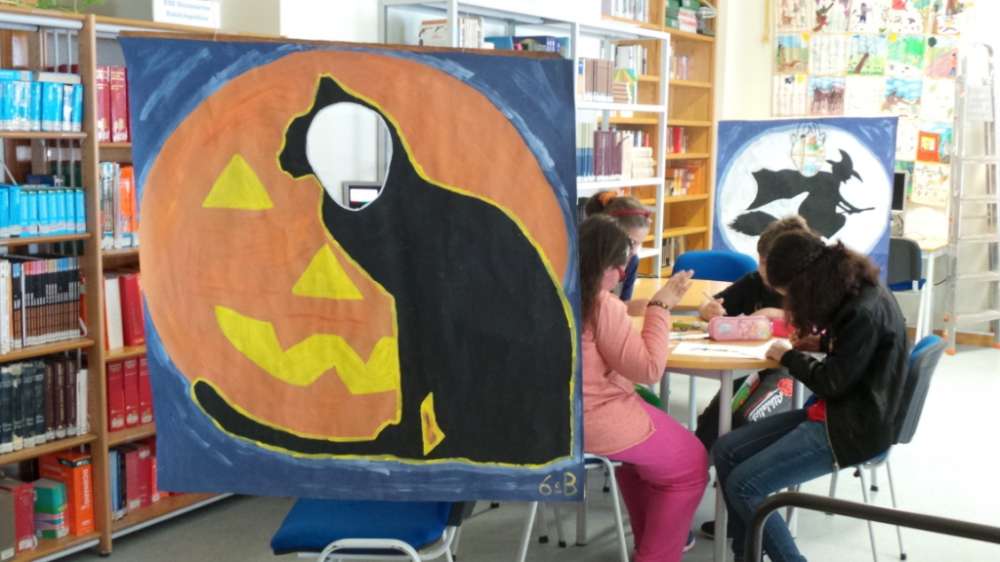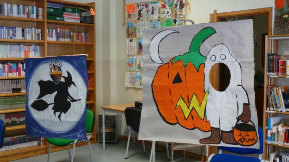 Esta iniciativa, dinamizada pelo Grupo de Inglês, teve como público-alvo os alunos dos 1.º e 2.º ciclos do ensino básico da escola sede. Um concurso de “Standees” elaborados com a preciosa ajuda dos professores de EV e ET permitiu que a Biblioteca do Polo 2 ganhasse vida e permitisse que todos os alunos da Unidade de Multideficiência e dos 3.º, 4.º, 5.º e 6.º anos se envolvessem no espírito do Halloween e pudessem ser fotografados pelos alunos do 12.º ano do Curso de Multimédia.