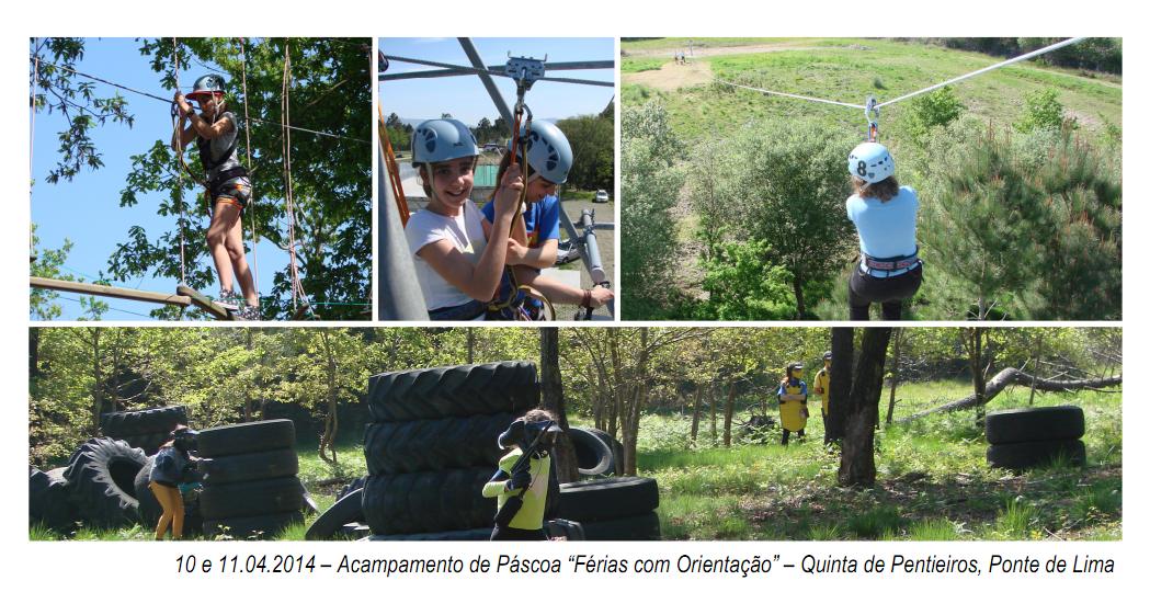 Participação no Acampamento de Páscoa “Férias com Orientação”, nos dias 10 e 11 de abril de 2014, organizado pelos professores Michael Sousa e Filipe Rego. Este acampamento com programa de atividades gratuito para os alunos atletas de Orientação, decorreu em Ponte de Lima e incluiu atividades de canoagem, slide, orientação, arvorismo, caminhada noturna e paintball.