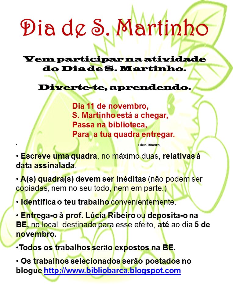 Esta iniciativa, dinamizada pelo Grupo de Inglês com a colaboração dos docentes das AECs, teve como público - alvo os alunos dos 1.º e 2.º ciclos do ensino básico. Foi promovido um concurso que consistia no enfeite criativo de guarda-chuvas. Esta iniciativa foi desenvolvida pelos alunos com muita participação e entusiasmo.
