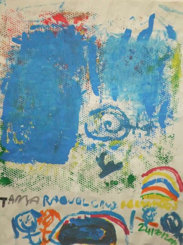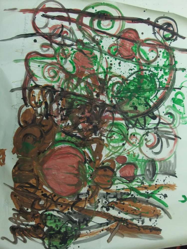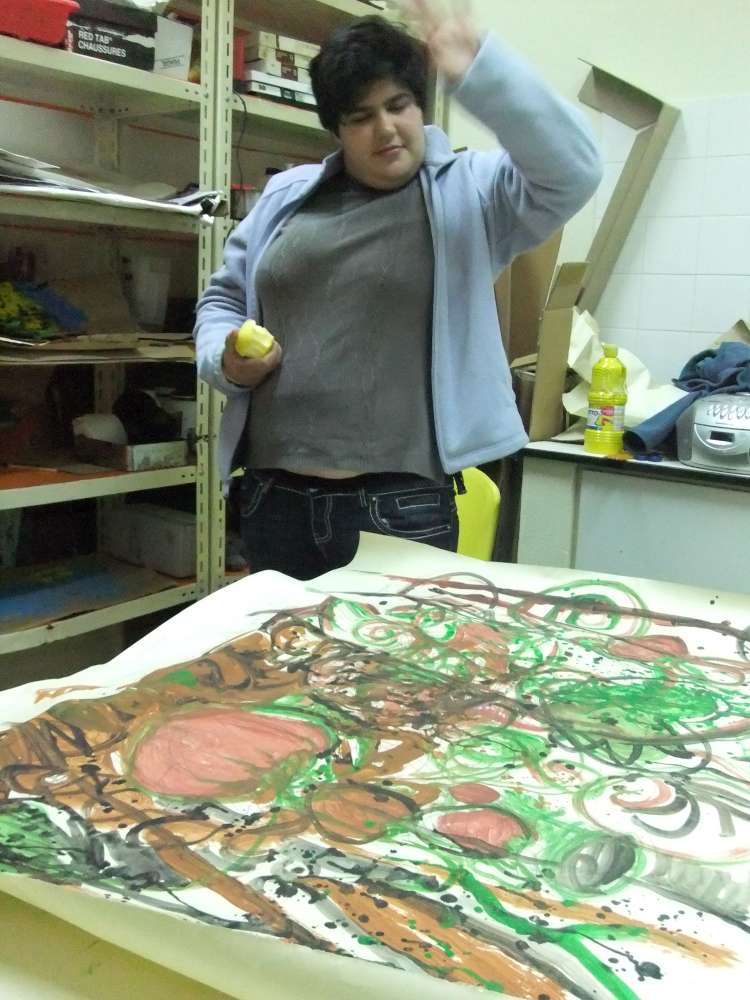 No Clube das Artes, descontraído por ambiências sonoras e saboreando pão espiga com doce de tomate (caseiro), exprimimos numa pintura a quatro mãos as cores, formas, texturas, os sons, sabores e aromas dessa experiência.