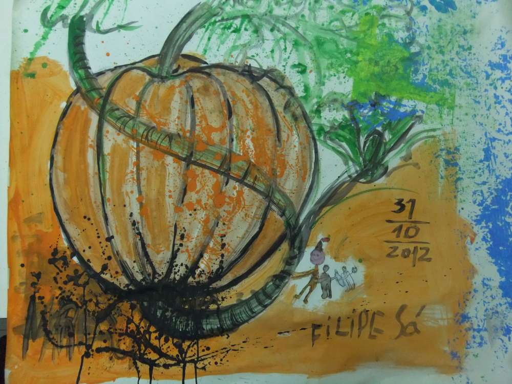 É um trabalho artístico da aluna Alice Cristina / Zé Mário Gonçalves, exposto no bloco E, no Polo 2. A repetir talvez com doce de abóbora, quem sabe...