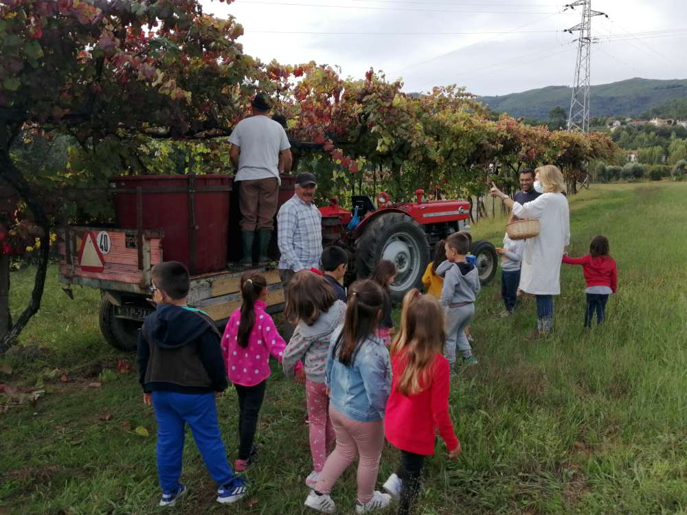 Assim, na quinta-feira de manhã, as crianças do pré-escolar, apetrechadas para o efeito, puseram pés ao caminho e foram vindimar no campo de um encarregado de educação, que gentilmente nos recebeu.